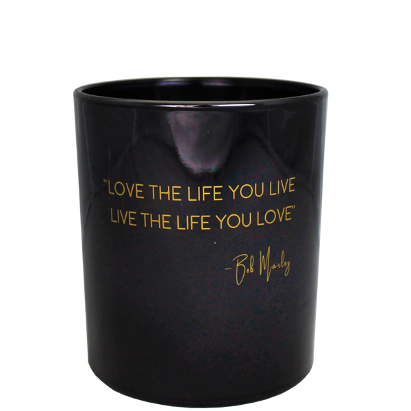 Op het spiegelend zwart gelakte glas prijkt de quote “Live the Life You Love. Love the Life You Live.”, een krachtige levenswijsheid van Bob Marley, ook wel bekend als The King of Reggae. Een tijdloze boodschap die perfect past in elk interieur.