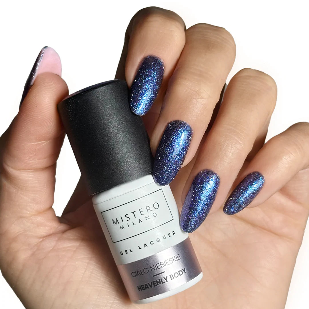 Een diepe marineblauwe tint vol verfijnde sprankels in blauw, roze en violet als sterren aan een heldere nachtelijke hemel. Heavenly vangt de magie van het universum in één kleur en laat je nagels fonkelen bij elke beweging. Voor een elegante, betoverende look die altijd in het oog springt.